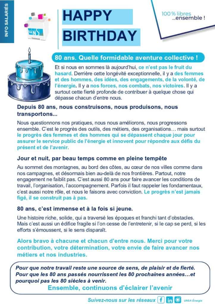9 avril 2026 UNSA Énergie 84 Views 8 AVRIL 2026,  80 ANS,  IEG